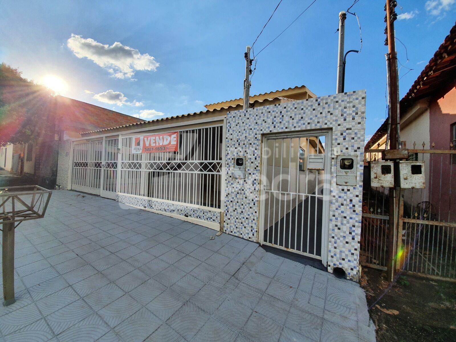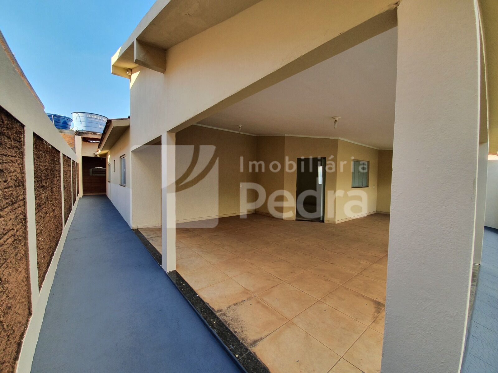 Uma casa residencial com 1 suíte, 2 quartos, 1 banheiro social, 1 sala, 1 cozinha, 1 área de serviço, 1 cozinha externa, 1 banheiro social externo, 1 depósito, garagem para 2 carros, teto na laje e piso na cerâmica; e, mais uma unidade residencial nos fundos para alugar com entrada independente e com 1 suíte, 1 sala, 1 cozinha, 1 área de serviço, 1 depósito, teto no pvc e piso na cerâmica.