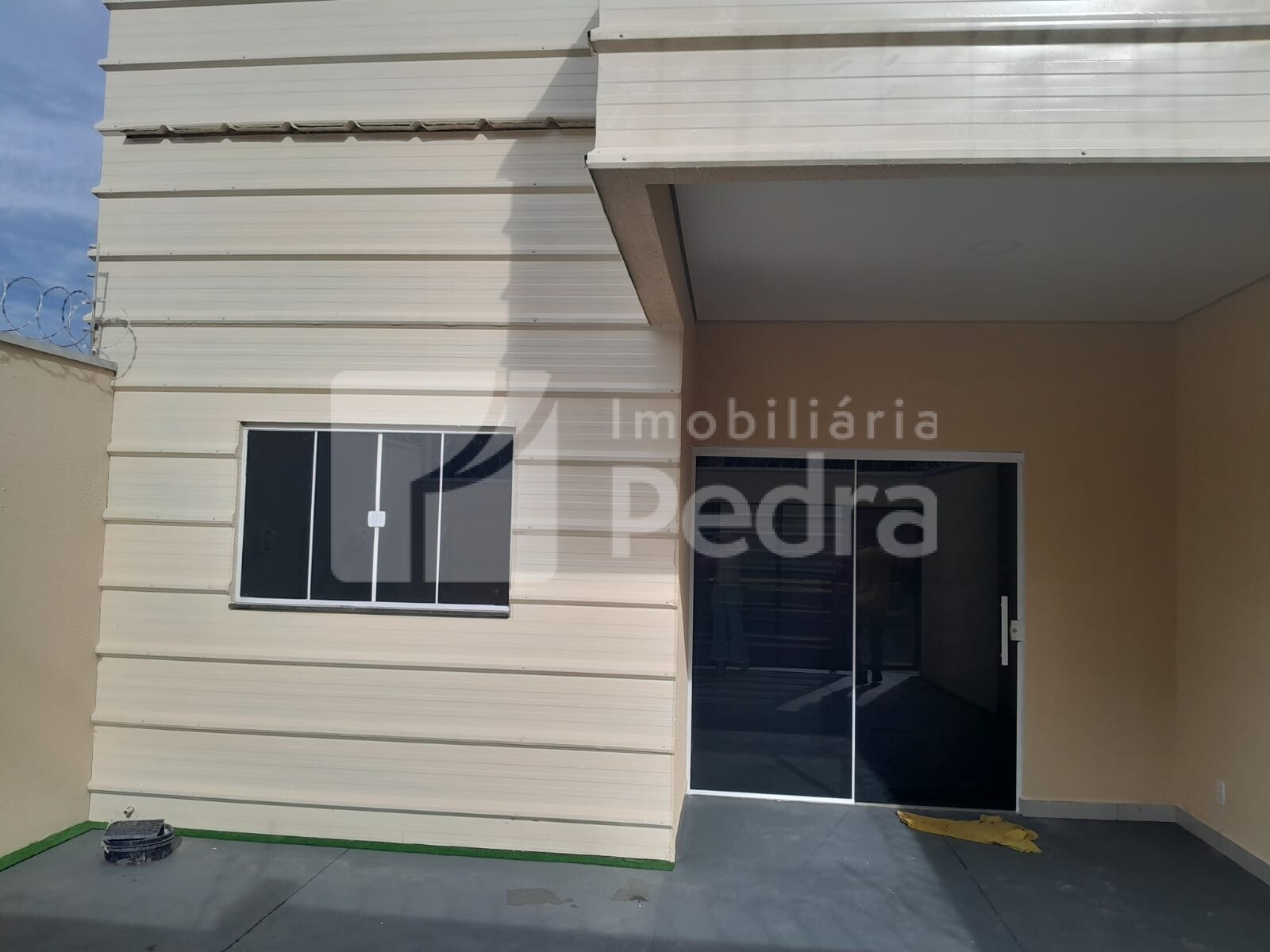 Um casa residencial construída no steel frame com 1 suíte, 1 quarto, 1 banheiro social, 1 jardim de inverno, 1 sala, 1 corredor de circulação, 1 cozinha americana, 1 área de serviço, portão eletrônico, cerca elétrica, piso no porcelanato, teto acartonado de gesso.